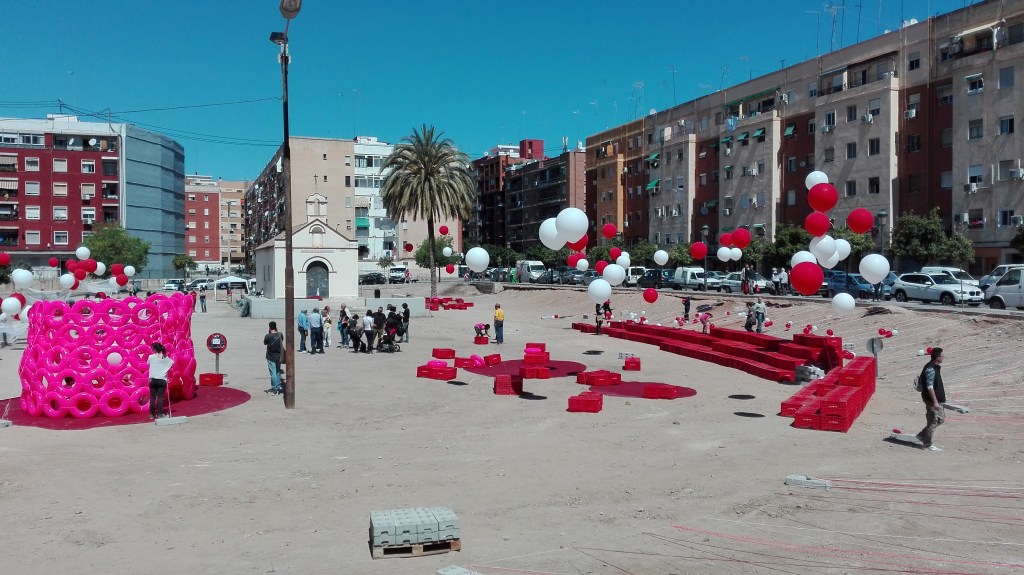 · construcción de una plaza efímera (pop-up square) dentro del proceso participativo sembra orriols en el barrio de Orriols (Valencia) · 2016